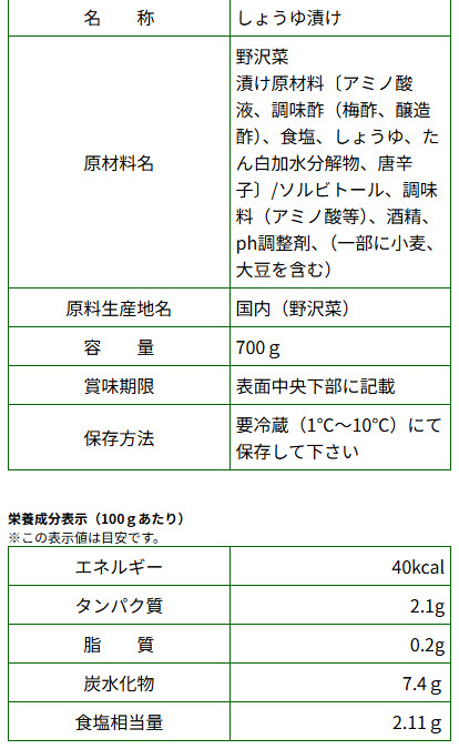 野沢菜漬け 700g 12入